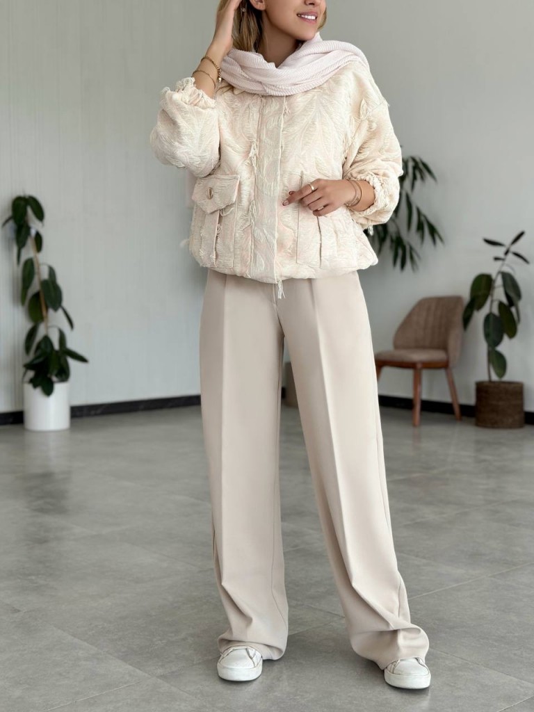 برای مشاهده و خرید شلوار بگ کرمی زنانه این ست جذاب کلیک کنید.