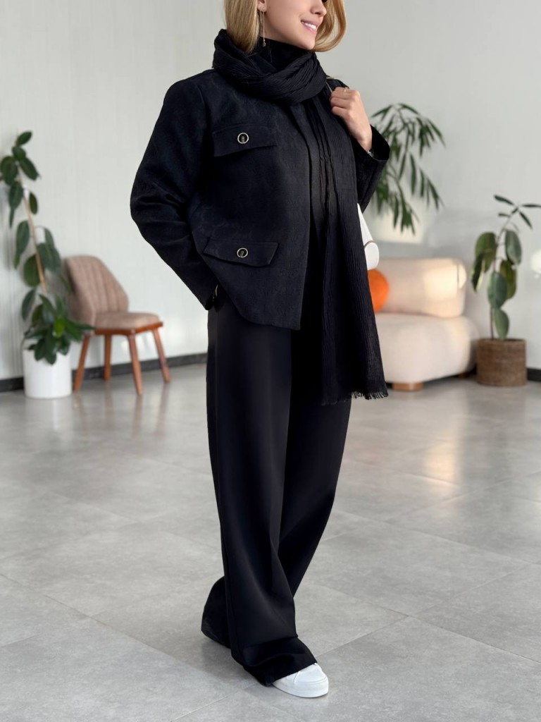 مشخصات و خرید کت مشکی پاییزی زنانه ژاکارد طرح داماسک کد DAMASK با طراحی سارا مجیدی