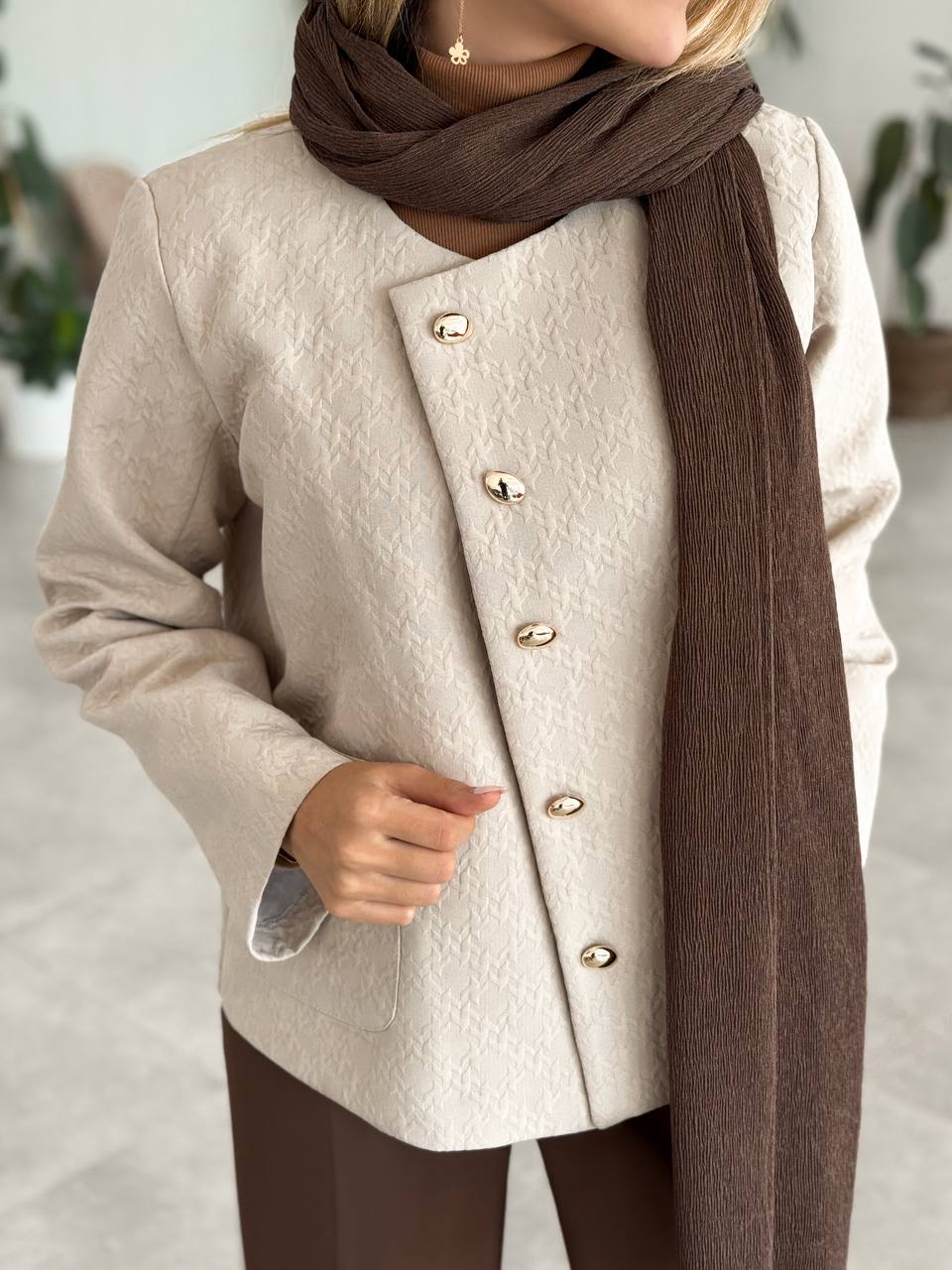 مشخصات و خرید کت کرمی زنانه پاییزی ژاکارد کد KILO با طراحی سارا مجیدی