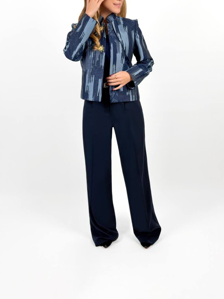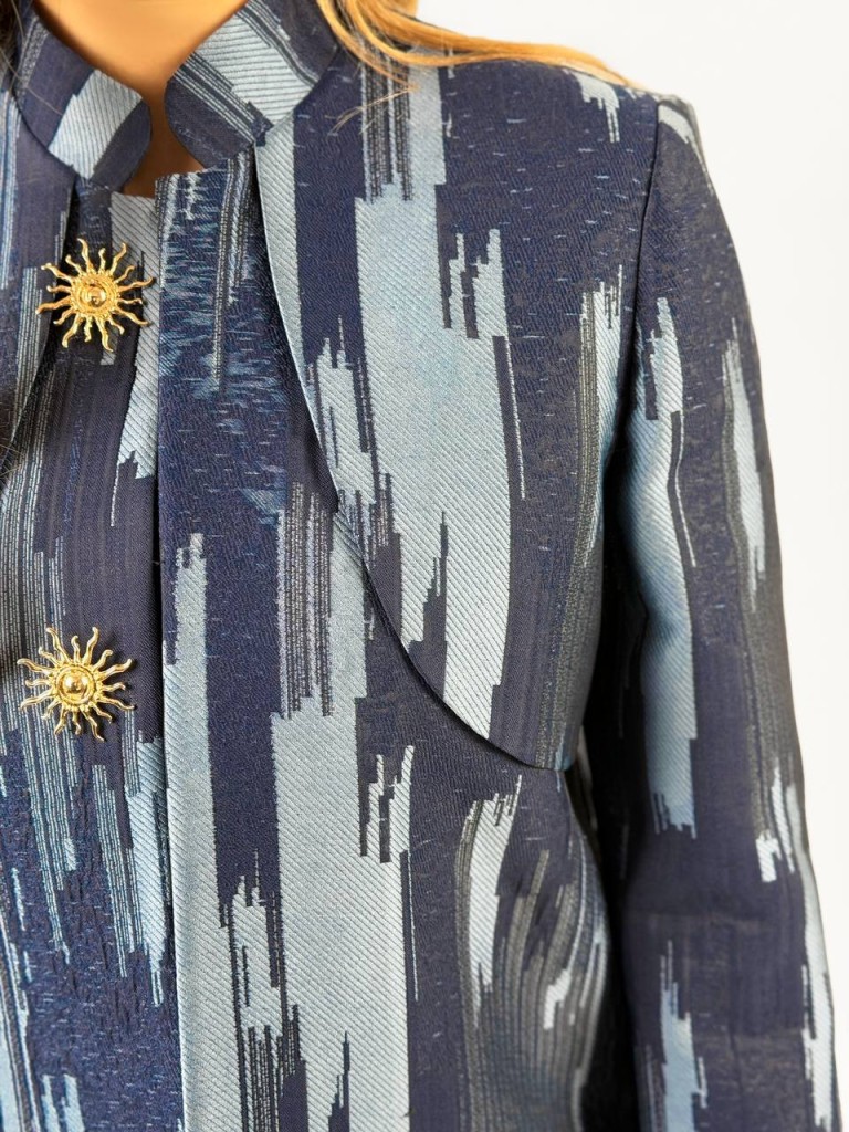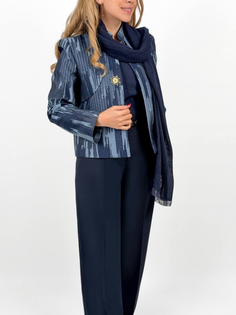 کت آبی ژاکارد بهاره؛ ظرافت، وقار و ترند بهاری از سارا مجیدی