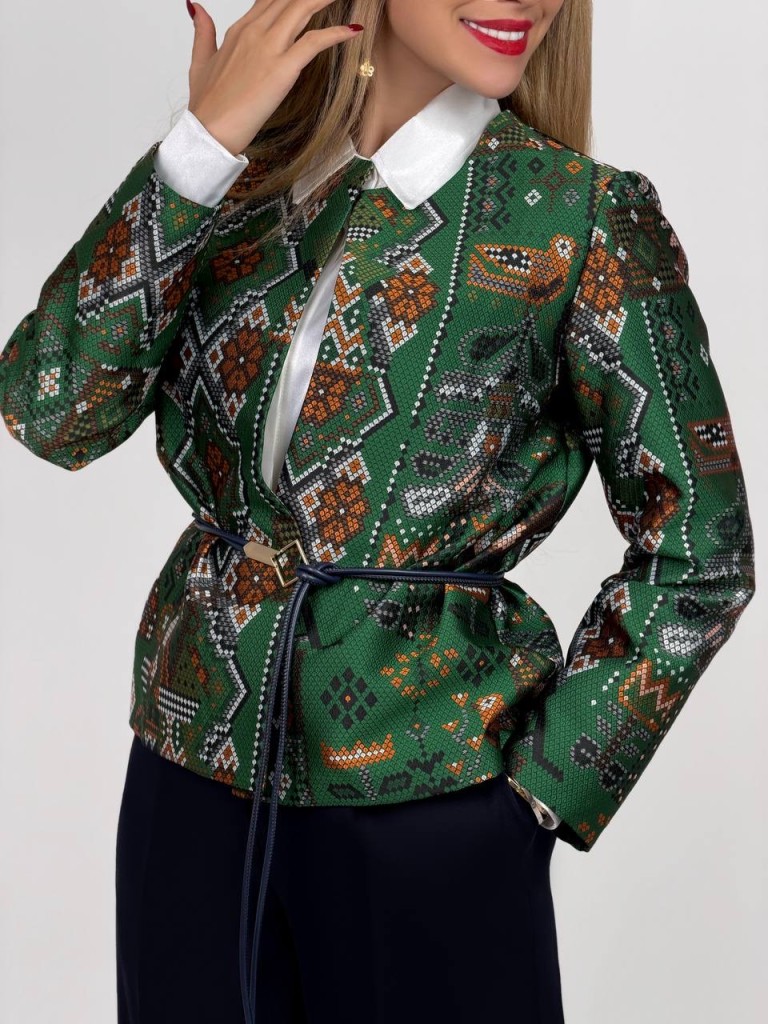 مشخصات و خرید کت ژاکارد پیکسلی مینیاتوری سبز زنانه کد MALAN برند سارا مجیدی