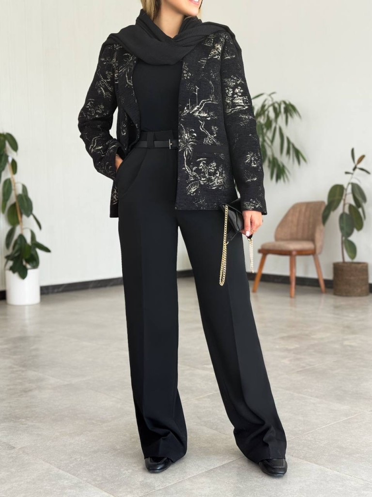 مشخصات و خرید کت مشکی پاییزی زنانه ژاکارد کد MANA با طراحی سارا مجیدی