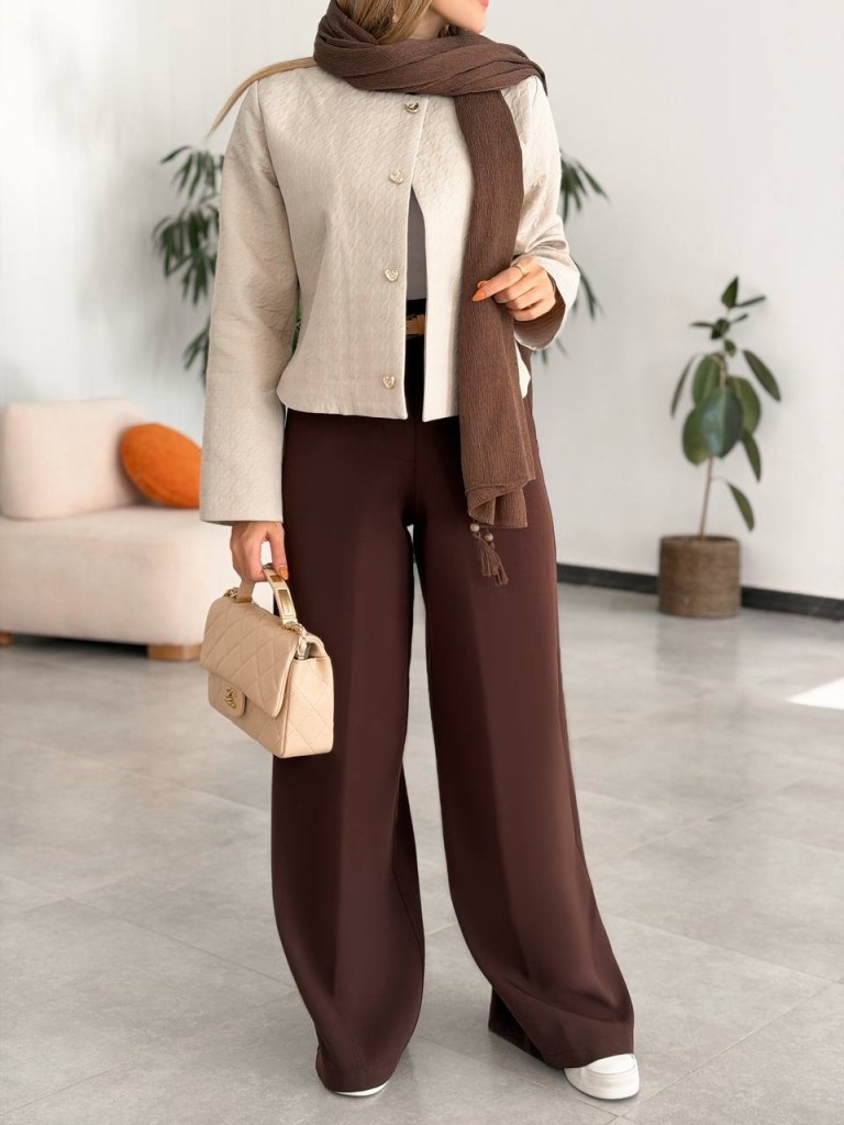 کراپ کت پاییزه کرمی دخترانه و زنانه