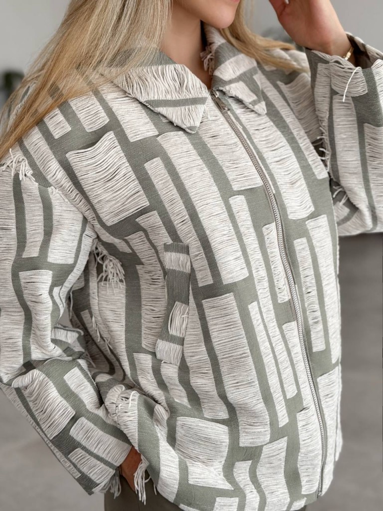 مشخصات و خرید جکت زیپدار پاییزی زنانه ریش ریش کد NARIN با طراحی سارا مجیدی