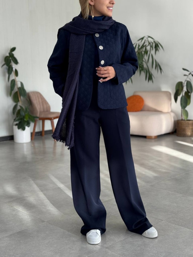 کت ژاکارد سورمه ای زنانه کد PONE