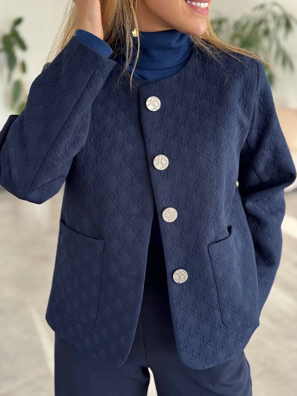 رنگ سرمهای یکی از رنگهای کلاسیک و پرطرفدار در دنیای مد است. کت ژاکارد سرمهای مدل پونه بهراحتی با رنگهای روشن و خنثی مانند سفید، کرم، طوسی و مشکی ست میشود و برای موقعیتهای رسمی و نیمهرسمی کاملاً مناسب است