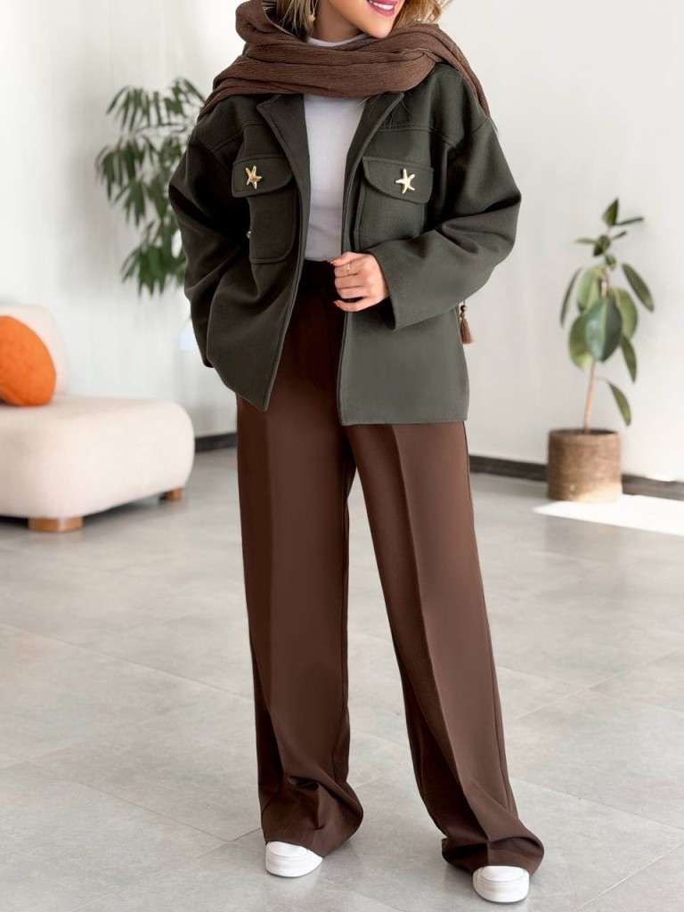مشخصات و خرید کت فوتر یشمی آستردار زنانه کد ROTI با طراحی سارا مجیدی