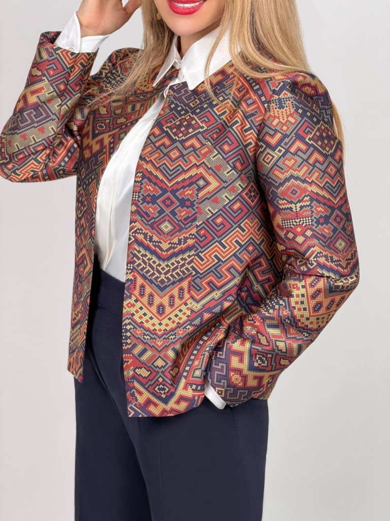 مشخصات و خرید کت پازلی طرحدار زنانه بهاره کد RUG برند سارا مجیدی
