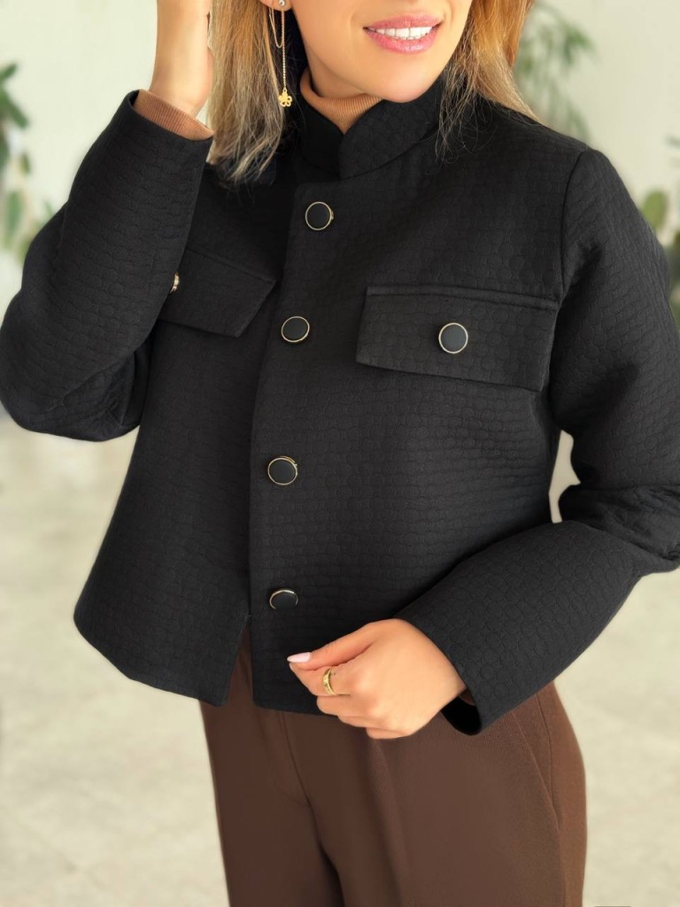 مشخصات و خرید کت ژاکارد مشکی جدید زنانه کد TOPI با طراحی سارا مجیدی