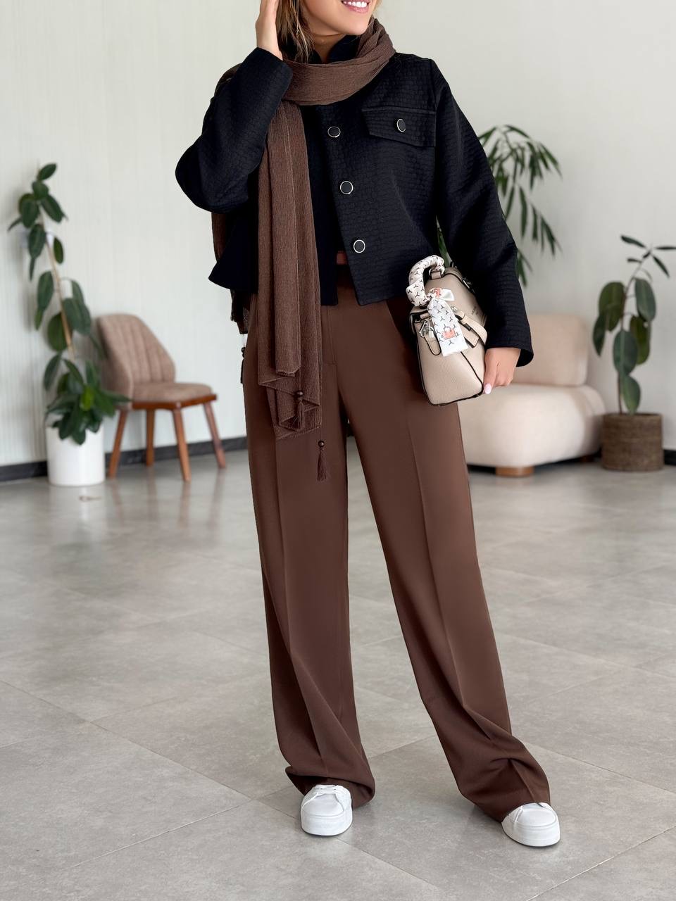 رنگ مشکی یکی از انتخابهای همیشگی در دنیای مد است. کت ژاکارد مشکی مدل پارچه توپی بهراحتی با انواع رنگها و آیتمها ست میشود و برای موقعیتهای رسمی و مجلسی گزینهای بینقص است