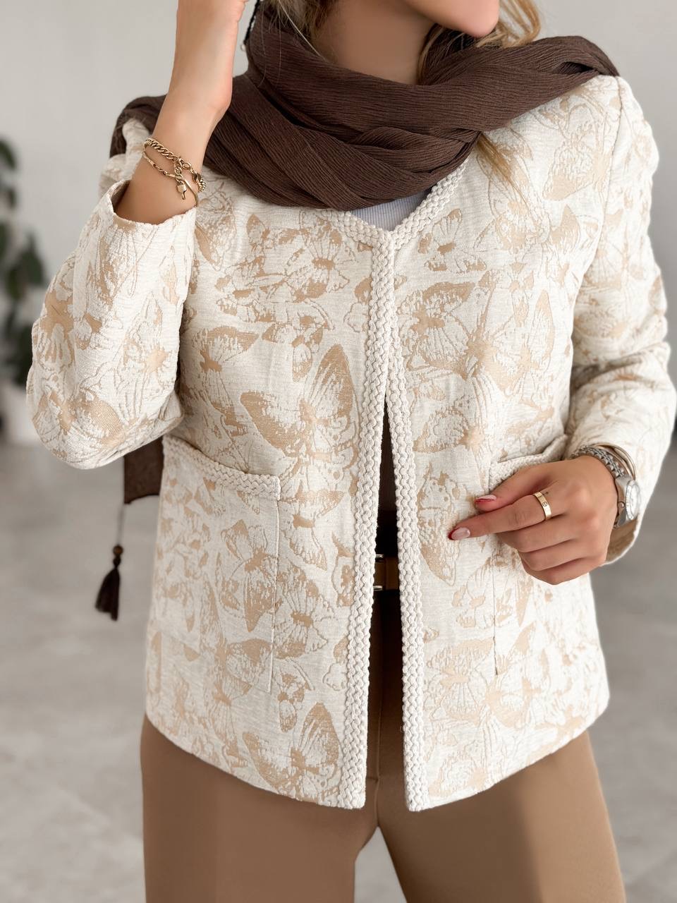 مشخصات و خرید کت ژاکارد پاییزی زنانه نواردوزی شده کد VENIZ با طراحی سارا مجیدی