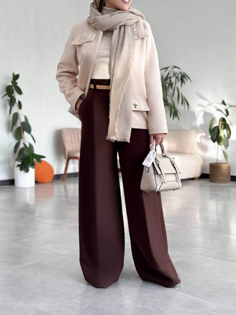 مشخصات و خرید پالتو فوتر استخونی زنانه آستردار کد ASENA با طراحی سارا مجیدی