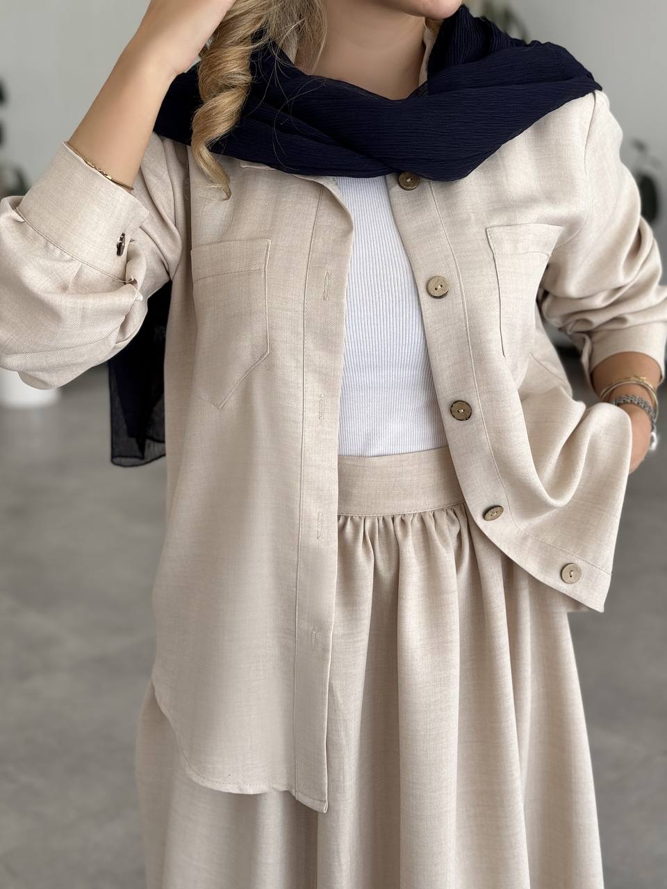 ست شومیز اسلپ کرمی و شلوار بگ سورمهای زنانه