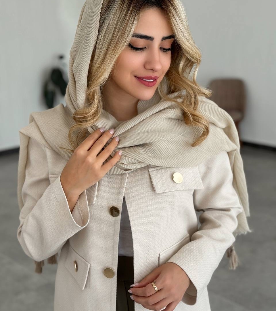 ترکیب مانتوی سبز زیتونی با شلوار کرم، یکی از پرفروشترین انتخابهای مزون سارا مجیدی برای پوست گندمیه.